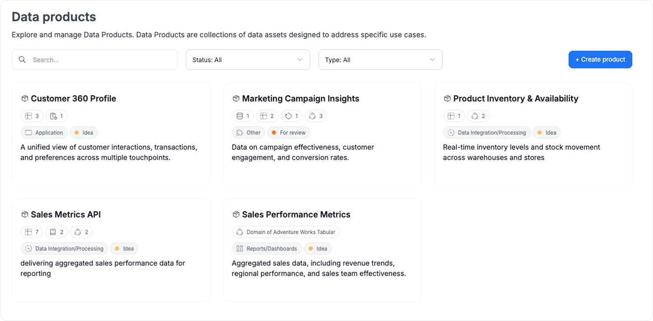Each product has a defined lifecycle. Users can see if the product is in development, active in production, or deprecated. This reduces the risk of using outdated or invalid data.