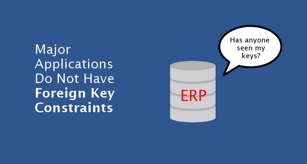 Recently, I had a number of discussions in LinkedIn groups about the lack of foreign key constraints in the databases and most architects, DBAs, and developers were surprised or even outraged that this happens. This got me thinking about the problem and I wanted to dig deeper into this matter and I did a lot of research. One of my findings is that many flagship applications of major ERP/CRM vendors, like Microsoft, Oracle or SAP, don't have foreign key constraints in their databases.