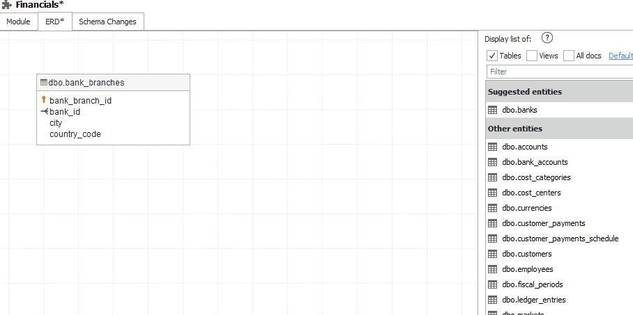Design your diagrams your way. Rather than adding all tables at once, build meaningful, focused diagrams directly from your data catalog with a simple drag & drop. Dataedo suggests relevant entities you can add next, or you can easily search the entire catalog to find what you need.